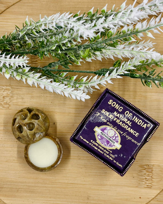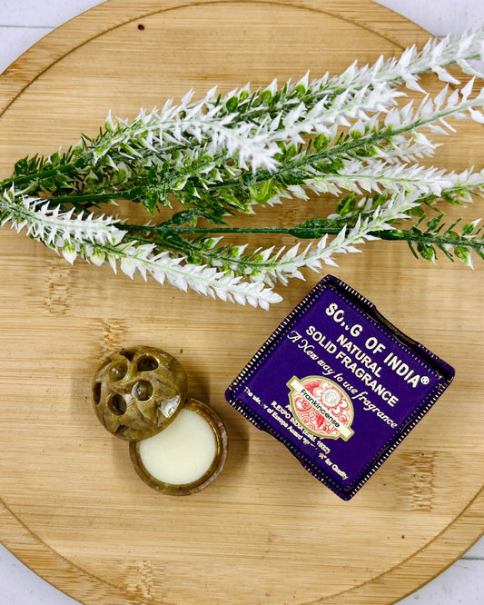 Solid perfumes are a blend of fragrance oils, essential oils, or aromatic liquids solidified in molten wax, making a solid perfume. It is used to moisturize one’s skin and add a pleasant scent to the body.