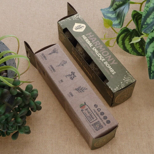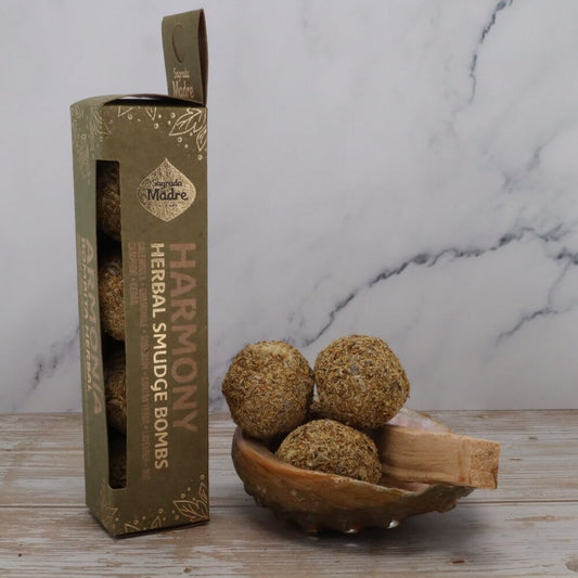 Smudge bombs are natural handcrafted balls of herbs that deliver a strong burst of smoke. Their crafted strong scents are perfect for cleansing and purifying spaces all while being 100% organic and natural! All you need is to place the bomb on a heatproof container such as a pot, and light one side until it begins to smoke! The natural herbs will smolder adn release fragrant smoke and allow you to smudge and cleans your space