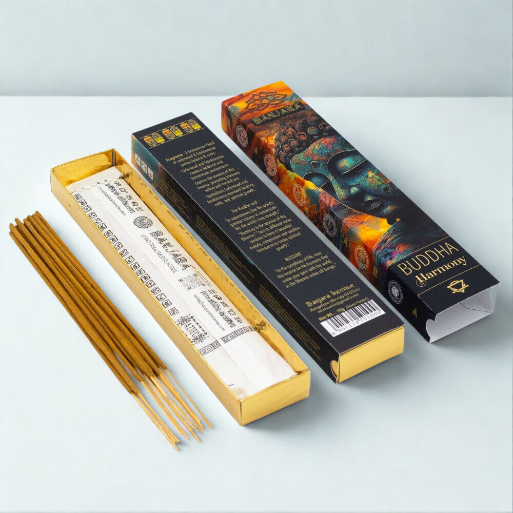 Experience balance and calm with Banjara Incense BUDDHA HARMONY. This finely crafted incense fills your space with a soothing fragrance that promotes inner peace and well-being. Ideal for meditation, yoga, or simply unwinding after a long day, BUDDHA HARMONY helps create a harmonious atmosphere that nurtures clarity and relaxation. Bring a sense of unity and tranquility to your environment with this exquisite scent.