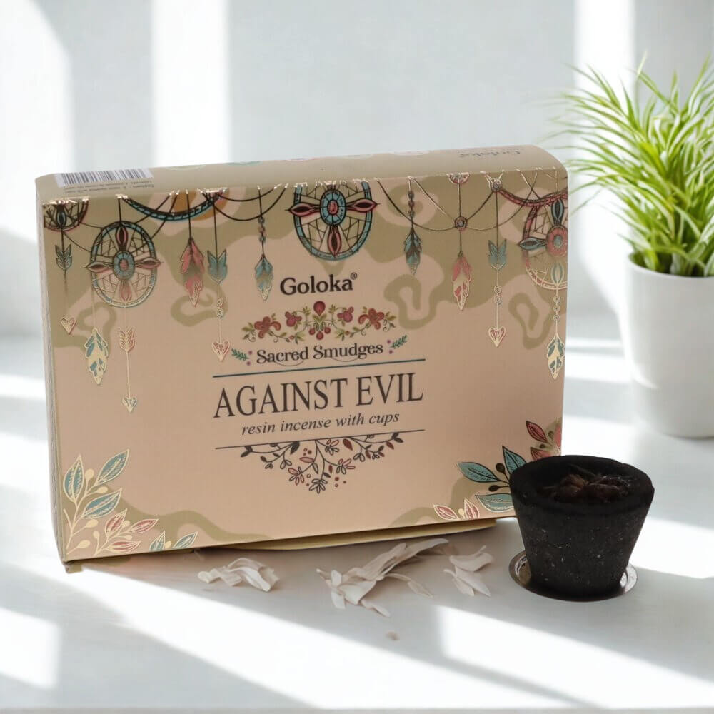 Goloka Resin Smudge Cups AGAINST EVIL offer a powerful way to cleanse your space and protect against negative energies. Crafted with authentic Goloka resin, these smudge cups release a rich, soothing aroma when burned, helping to create a peaceful, harmonious environment. Ideal for rituals or daily use, they promote a sense of spiritual balance and well-being while warding off unwanted influences. Elevate your home or sacred space with these effective, easy-to-use smudge cups designed for those seeking protection and positivity.