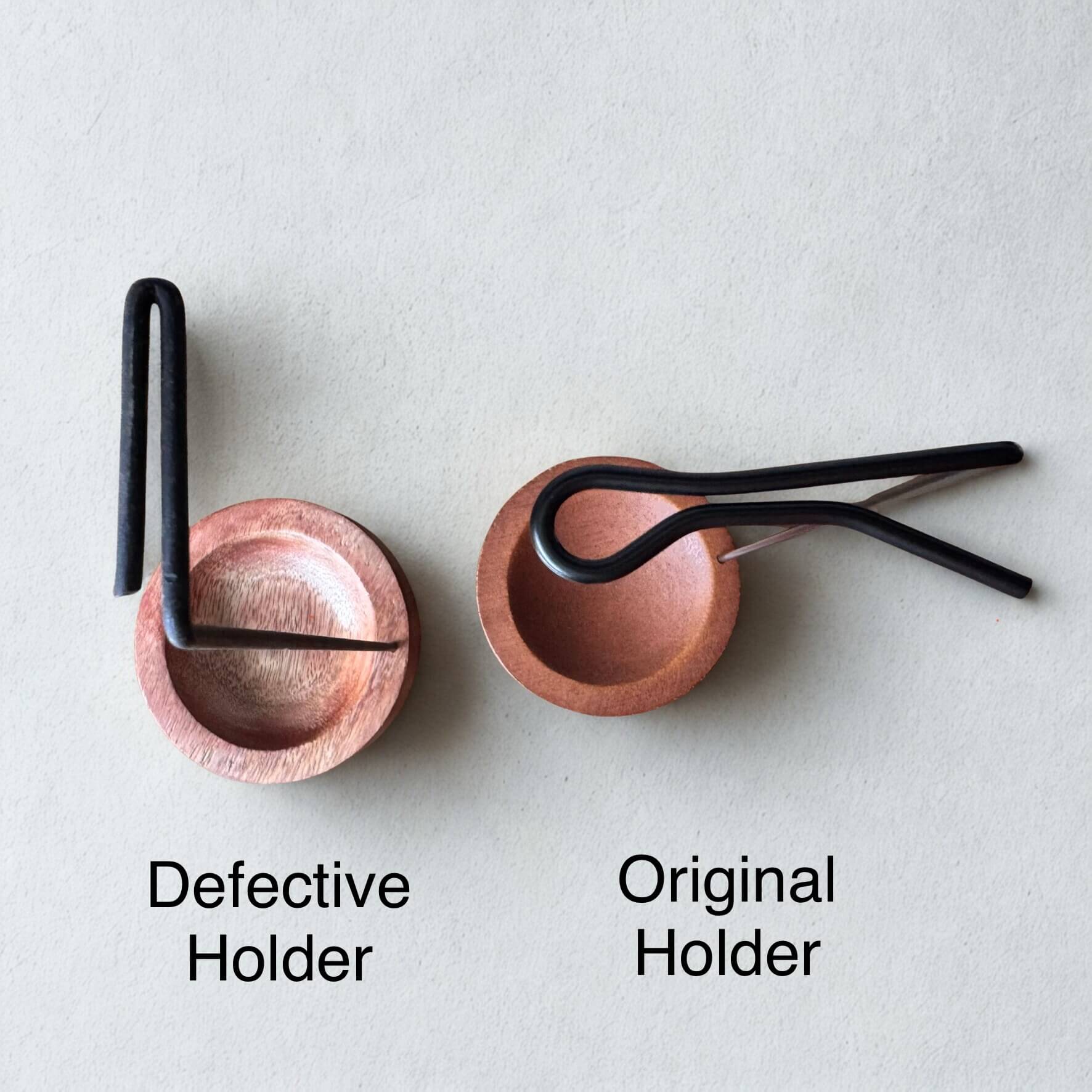 We received a batch of hanging holders that are unfortunately different to our usual holders! They still work perfect, but the steel is bent differently and the steel and wood are of different quality. Although still fully functioning, we are offering these holders at a heavily discounted rate!! Please see the photos of both holders side by side to note the differences before purchasing.