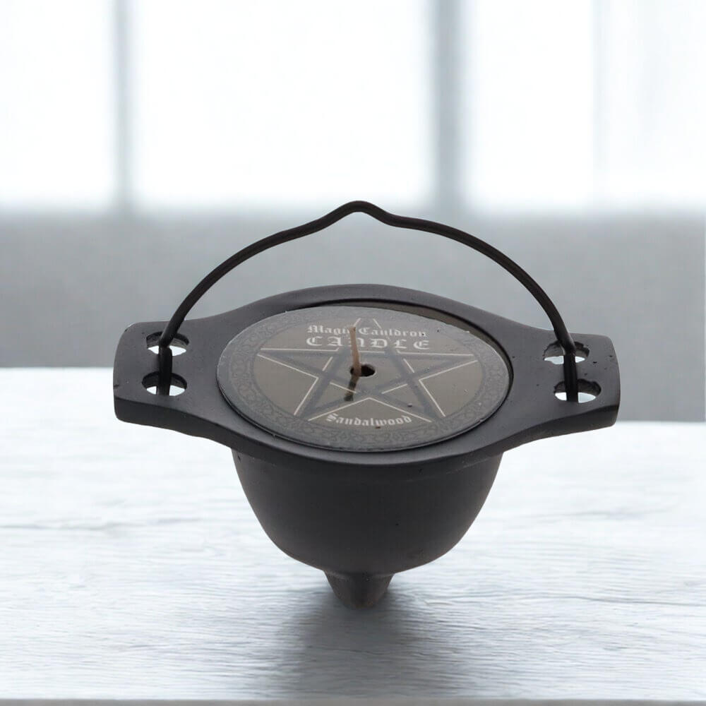Cast a spell with this cast iron miniature cauldron candle filled with natural wax.