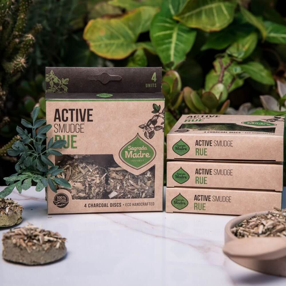 These Sagrada Madre Active Smudge Disks are hand made with Rue, carbon, plant based binders and salt. Use them for smudging.